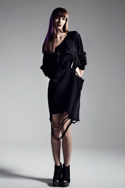 I love these. They look like the perfect blend between Ann Sofie Back's typical gothic, horror inspired designs (she says "The sequinned tops, dresses and sweats are slashed by Freddy Kreuger himself") and Topshops laid back, streetstyle aesthetic. There are enough slashes for it not to look cartoony and ridiculous, and enough for it to avoid looking like an unfortunate accident with a pair of scissors.
